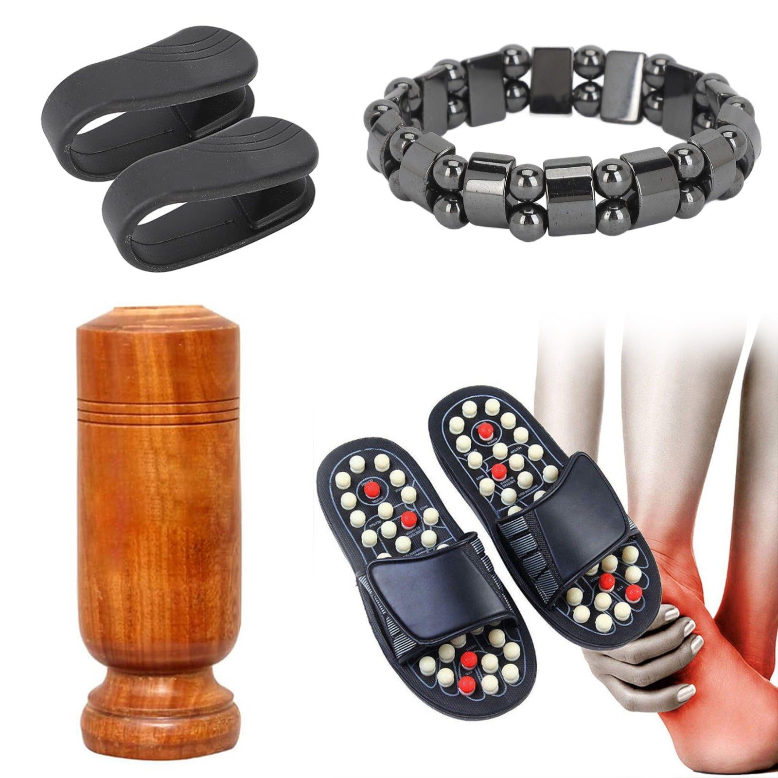 4 Products:- Acupressure slipper, Vijaysar Sugar Glass, Wellness Magnetic Bracelete, Sugar Control Clip